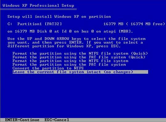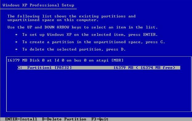 partition. In our case, we would like to install Windows XP. So just